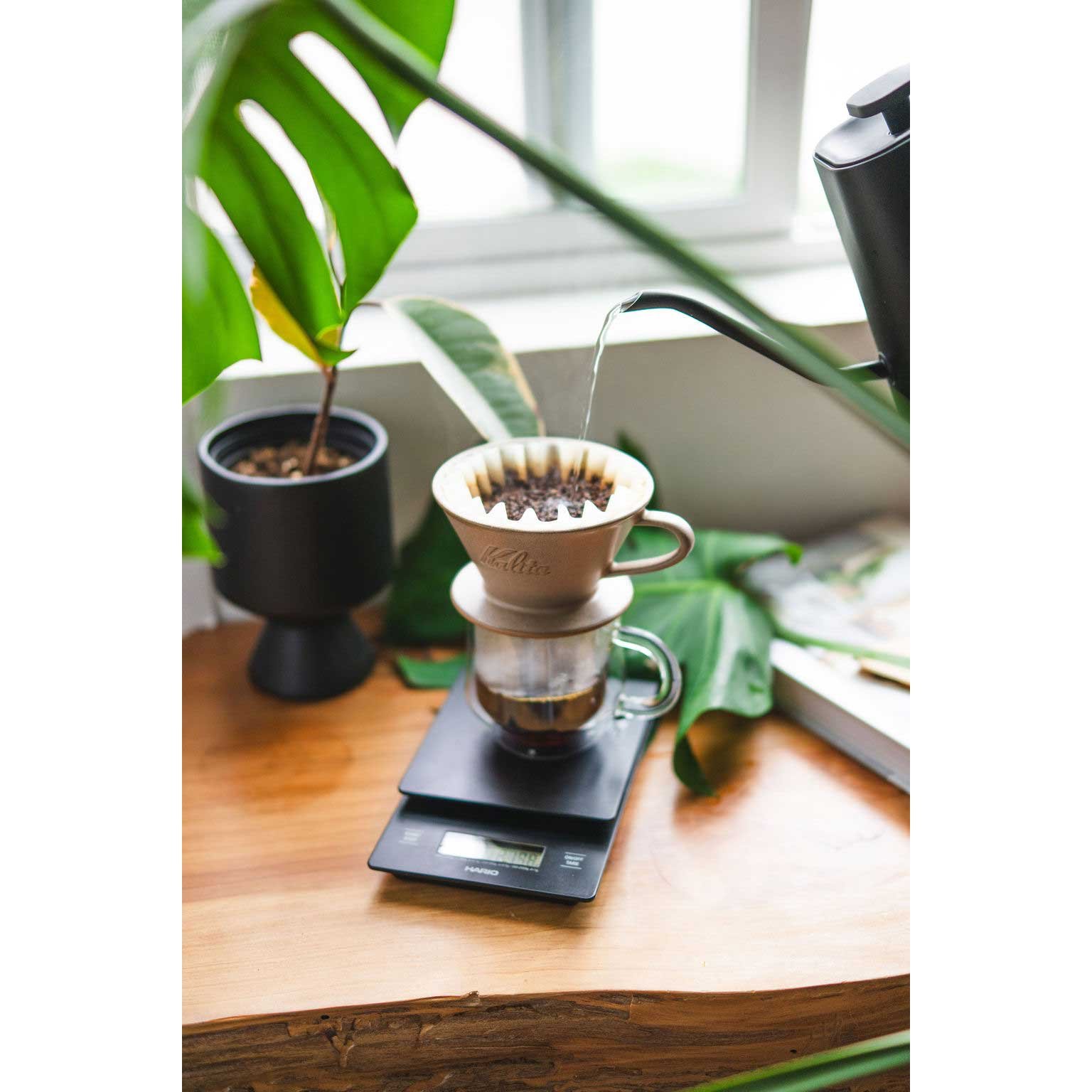 The MINO’s flat-bottom, 3-hole design paired with Kalita 185 Wave filters ensures an even extraction for smooth, balanced coffee free of bitterness. Its 20-wave filter and dripper minimize contact between water and the filter, allowing for an even flow and rich, full flavor.