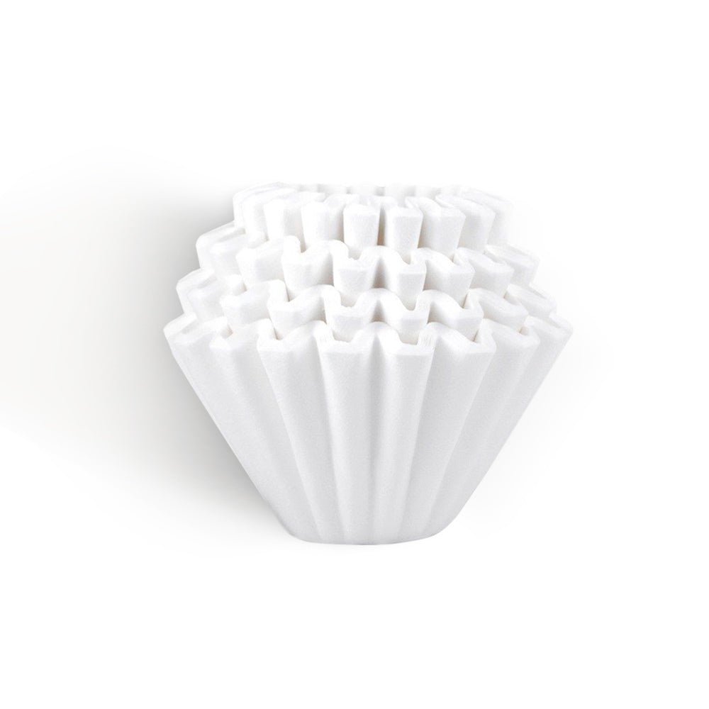 The Kalita Wave is a unique brewing process with tailor-made filters and brewers that provide foolproof pour over coffee extractions. The inside of a brewer features a wave design with a contrasting 20-wave filter that works rhythmically together to limit contact between each other so water can flow evenly and at just the right rate. Once the water reaches the flat bottom 3-hole design the brewer prevents water from accumulating so extractions are even and bitterness is dodged; the result is delicious coffee. Rarely are people disappointed with the results of a Kalita Wave Brewer for their even extractions and simple brewing process.